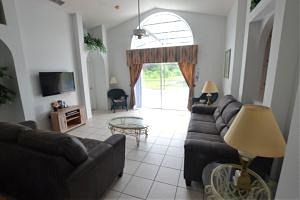 tiled living room, comfortable sofas and South facing views over Lake