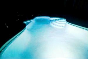 large pool has led lighting for those evening swims to relax and cool