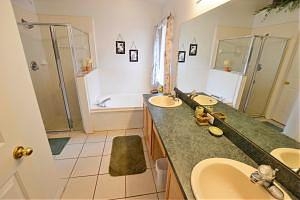 bathroom with dual vanaties, hairdryer, all towels provided.. |
