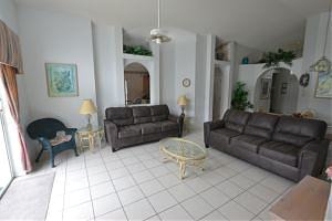 tiled living room, comfortable sofas and South facing views over Lake